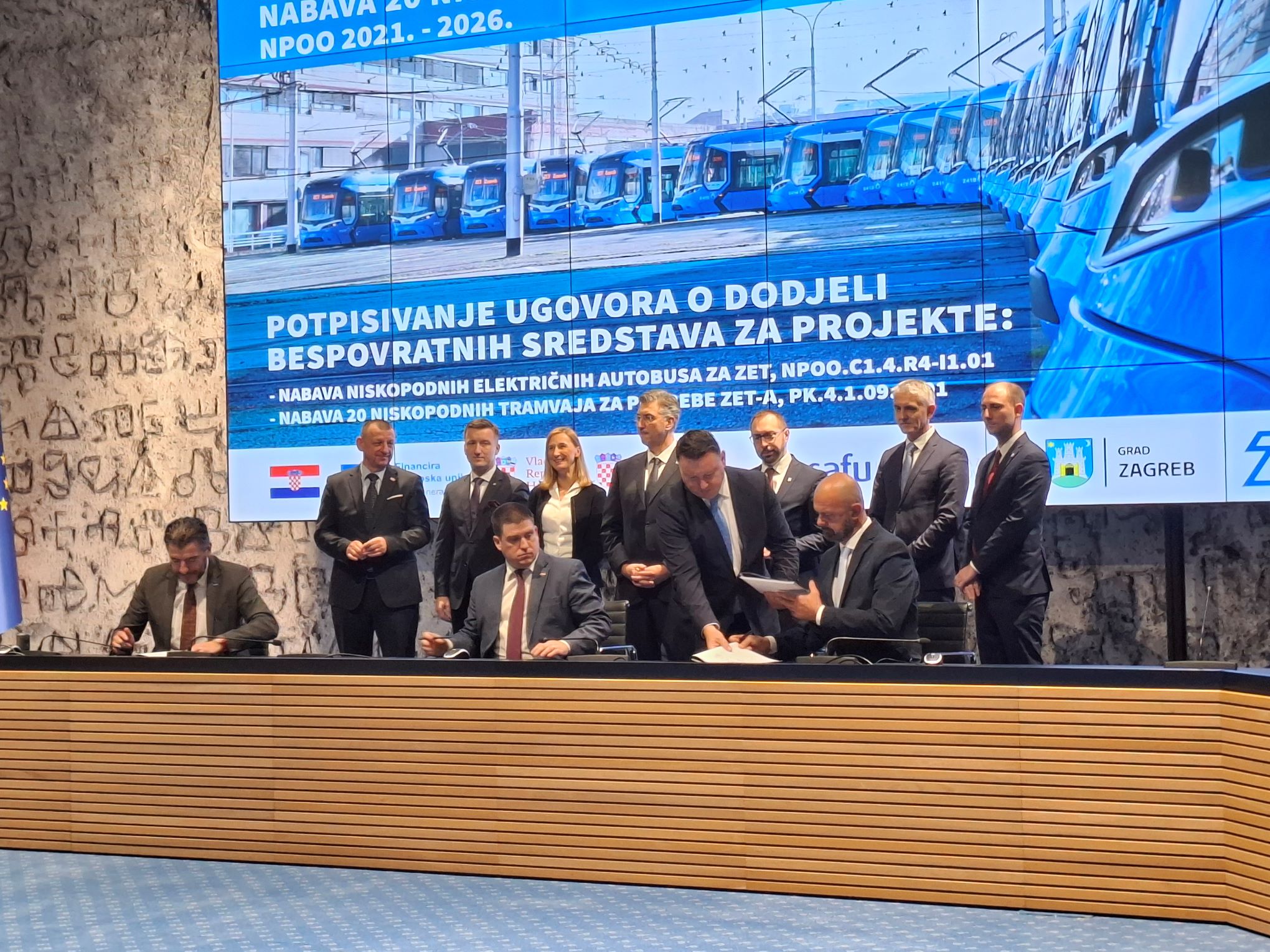 Usto, potpisan je i ugovor o dodjeli bespovratnih sredstava za nabavu 62 niskopodna električna autobusa za ZET, ukupne vrijednosti 56.752.679,83 eura, pri čemu je 45.398.360,00 eura sufinancirano putem NPOO-a. Svi autobusi bit će isporučeni do listopada 2026.